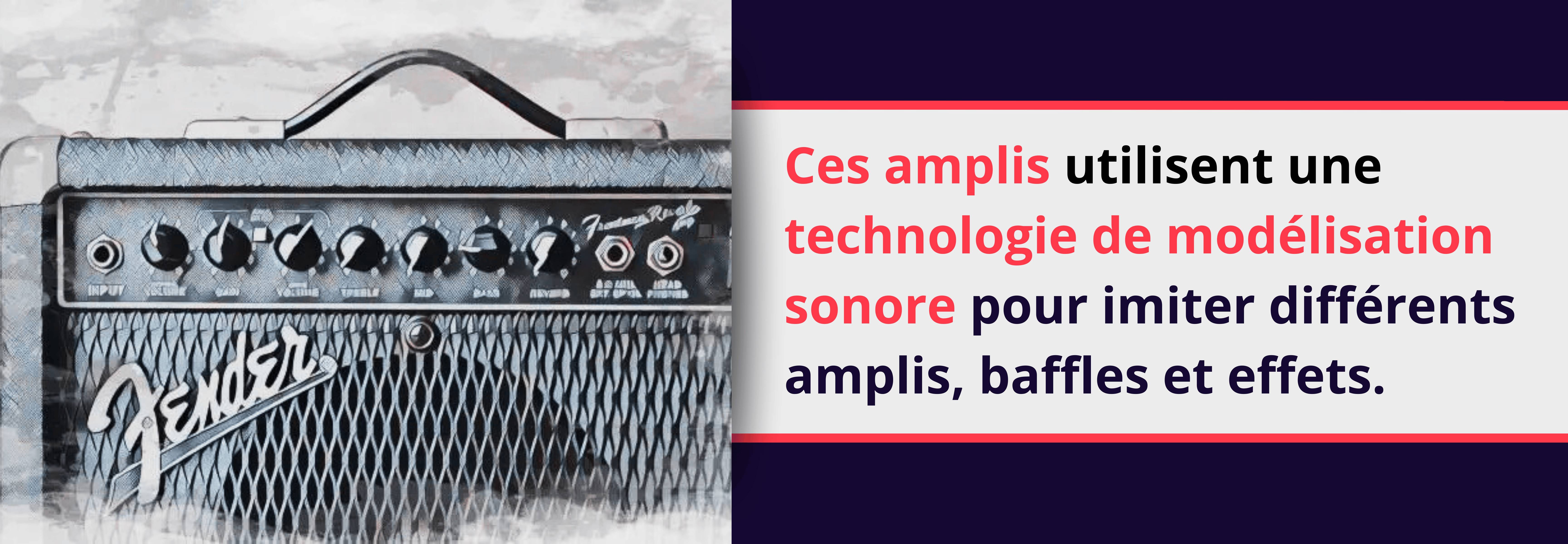 Ces amplis utilisent une technologie de modélisation sonore pour imiter différents amplis, baffles et effets.