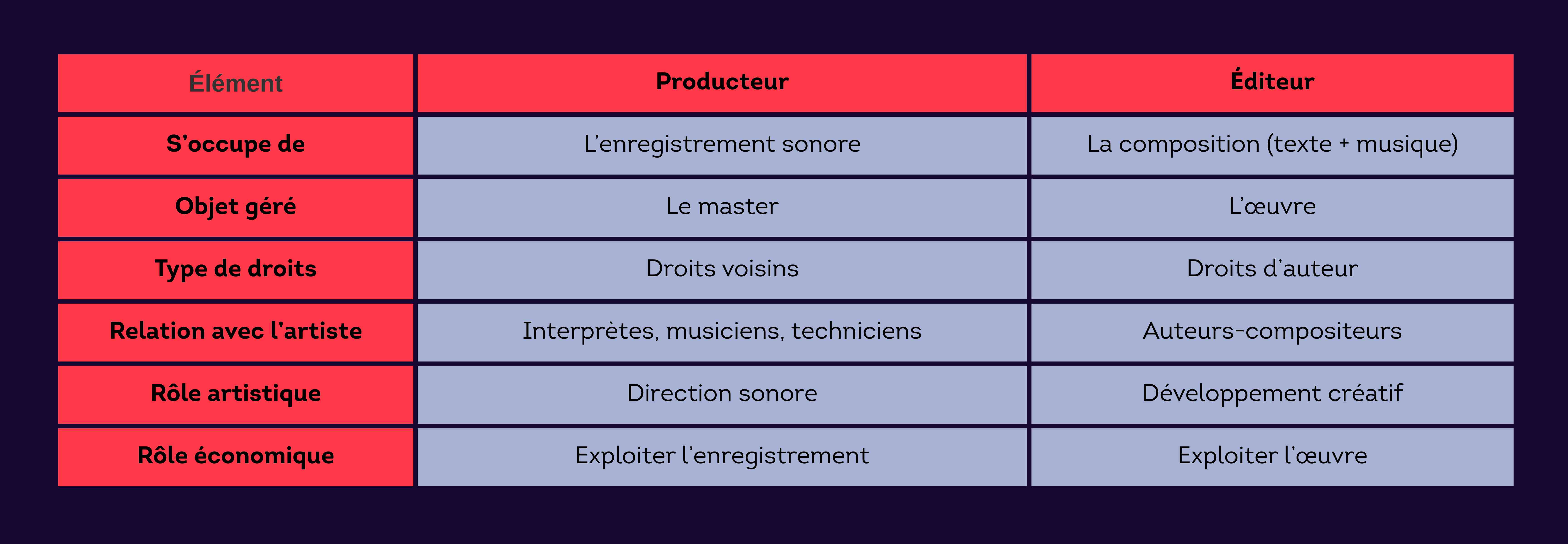 La distinction entre producteur et éditeur est essentielle pour tout artiste qui souhaite travailler de manière professionnelle.